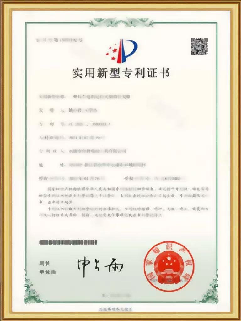 The company currently holds more than ten product patents and has passed various domestic and international technical certifications, including CCIB and EU safety certifications.